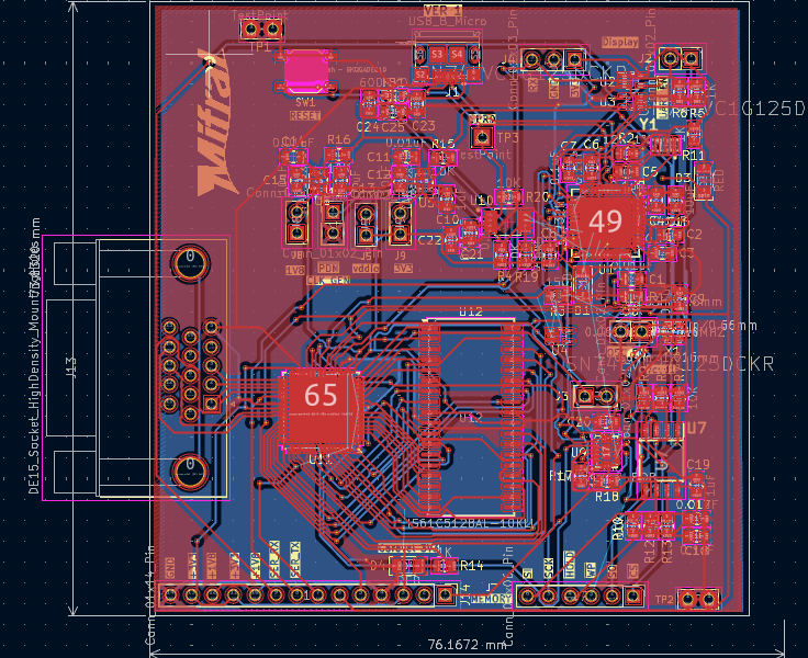 Figure 14. PCB layout of the Lacerta development board, showing the routed interconnections, component placement, and board geometry used to implement the final hardware platform.